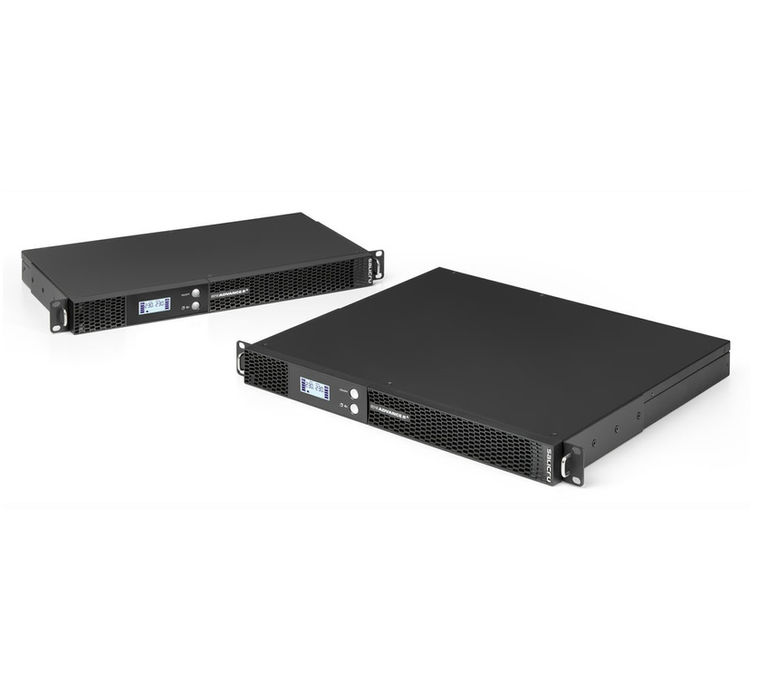 The series is available in powers of 750, 1,000 and 1,500 VA, all in 19” rack format and with a height of 1U. The depth is 216 mm for the 750 VA model and 485 mm for the 1,000 and 1,500 VA models.